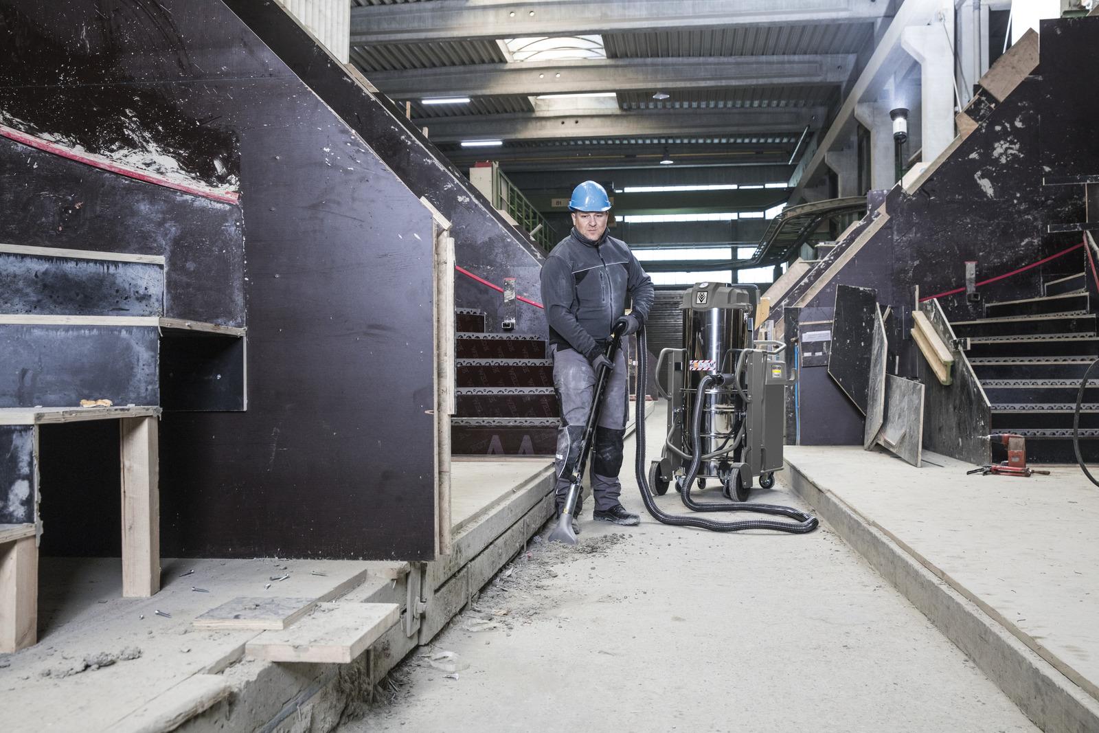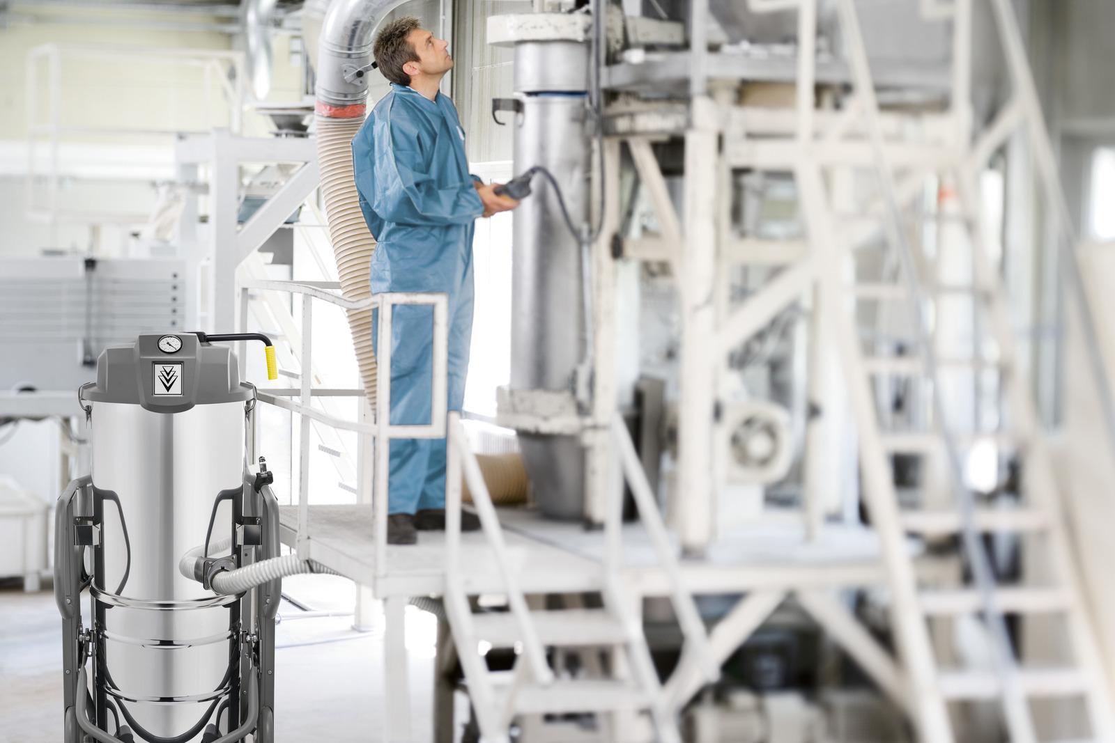 De IVS 100/75 M is het topmodel in onze superklasse industriële stofzuigerserie met stofklasse M-certificering. Uitgerust met extreem hoogwaardige componenten, zoals de 7,5 kW zijkanaalverdichter, zuigt hij ook veilig grote hoeveelheden fijn stof op dat gevaarlijk is voor de gezondheid. De grootste driefase motor in deze klasse werkt met een hoog rendement (IE2) en heeft een zachte opstartfunctie die effectief stroompieken voorkomt tijdens het opstarten. Bovendien is de machine ontworpen voor mobiel en stationair continu gebruik en is hij uitgerust met een corrosievrije roestvrijstalen container met een inhoud van 100 liter en een neerzetmechanisme, samen met een groot 16-voudig stervormig filter. Het filtersysteem wordt gereinigd door middel van een handmatige, horizontale filterschudder. Een speciale versnellingsbak voor gerichte krachtoverbrenging zorgt te allen tijde voor vergelijkbare reinigingsresultaten en ongeacht hoeveel kracht de gebruiker uitoefent. Accessoires kunnen op de machine worden opgeborgen voor veilig transport, terwijl de optionele afstandsbediening een zeer praktische aanvulling is op het brede scala aan apparatuur op de IVS 100/75 M.