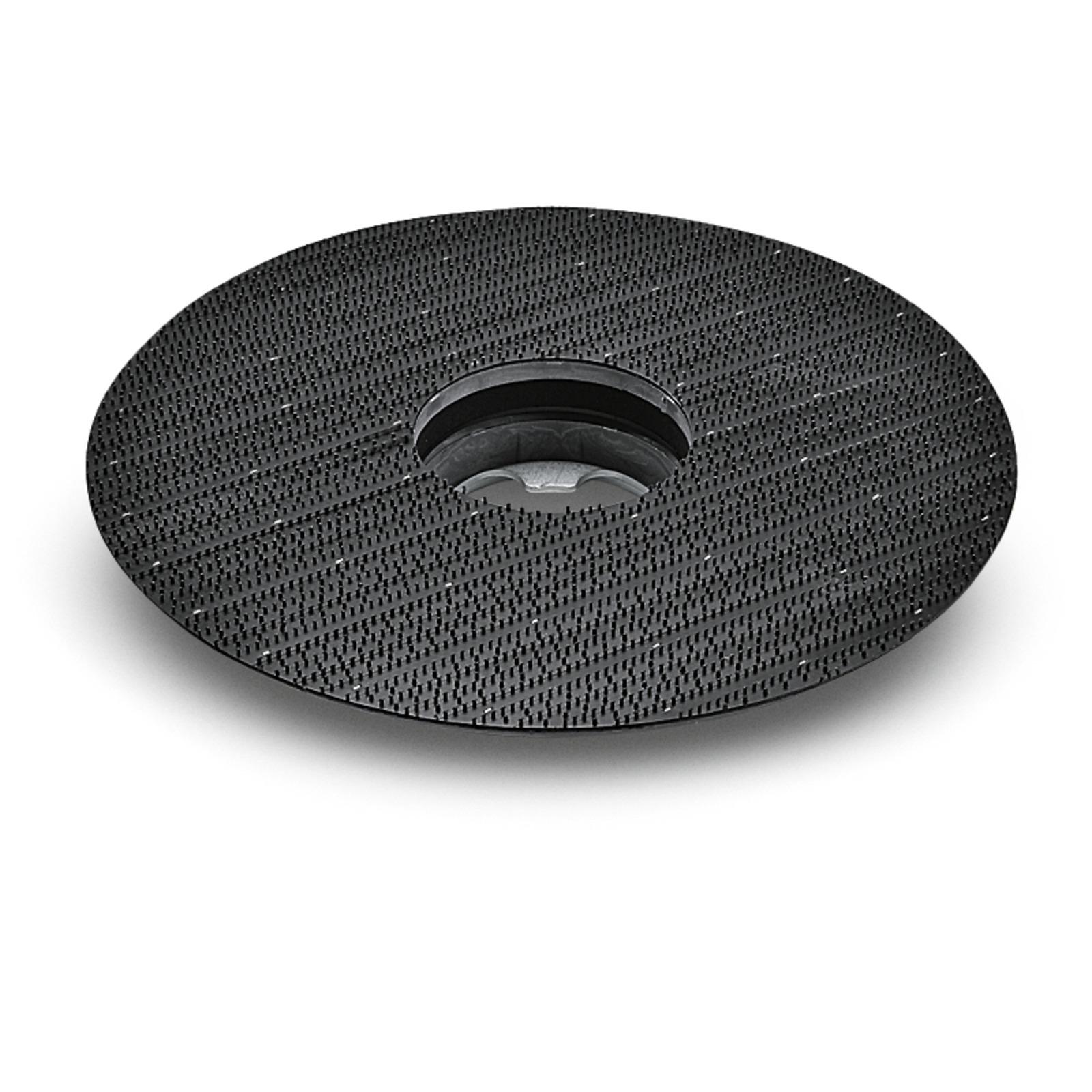 Padhouder voor de reiniging met pads en een machine met een toerental tot 500 tr/min aan verschillende snelheden (duo-speed). Gepatenteerd 2-traps dempingsysteem vermindert de trillingen tot een minimum. 430 mm diameter. De padhouder is uitgerust met een haakplaat, een snelwisselkoppeling en een centrale vergrendeling.