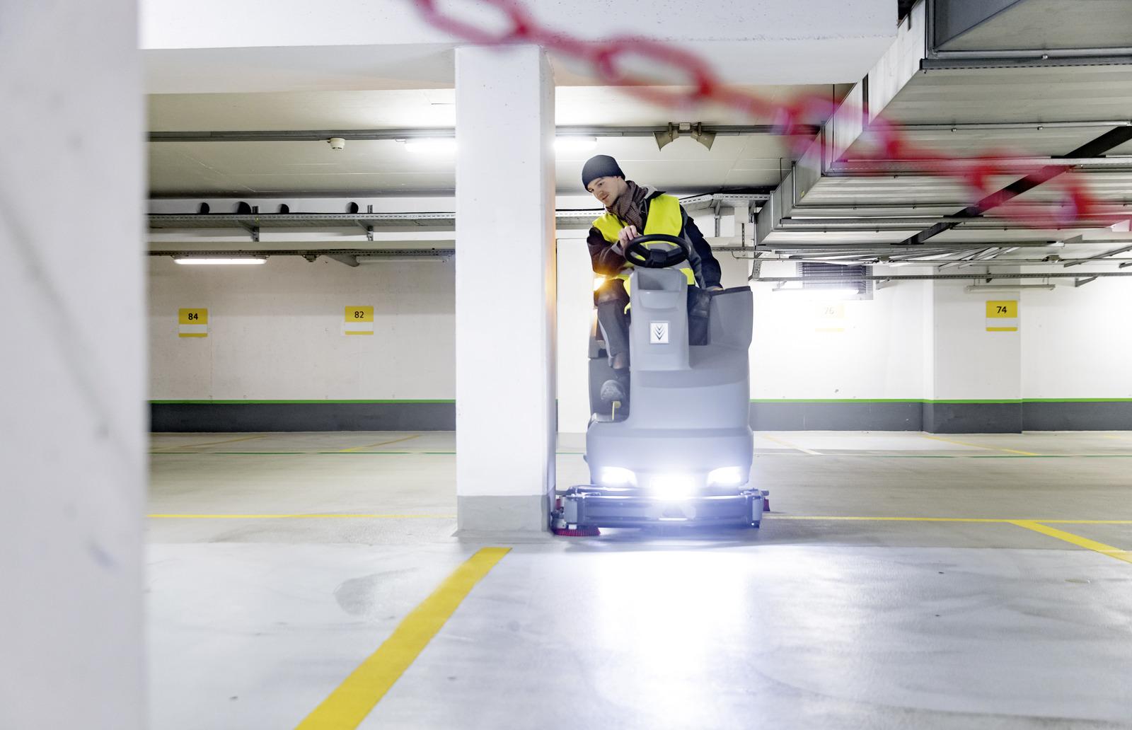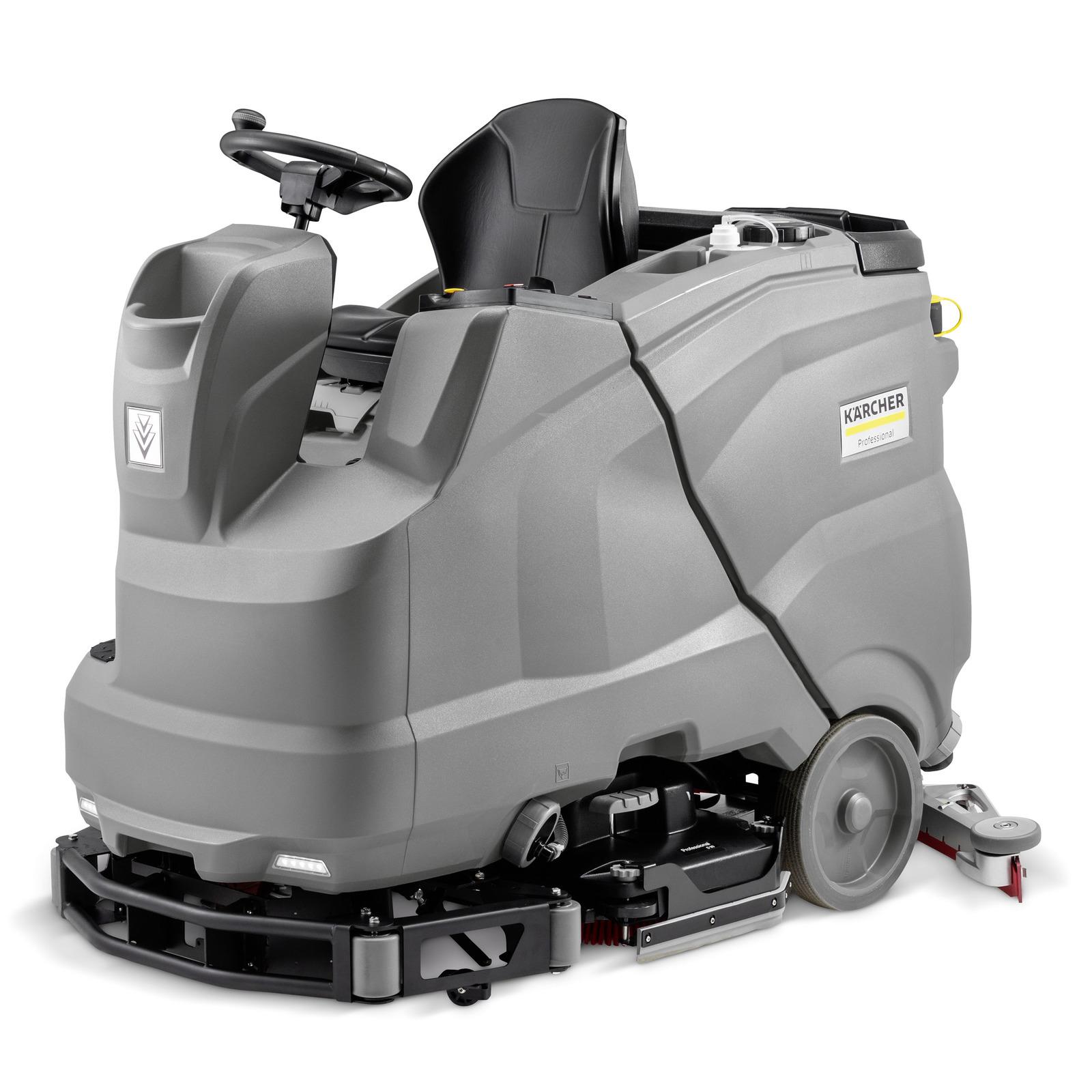 Robuust, compact, wendbaar, op accu: Onze batterij aangedreven ride-on schrobzuigmachine B 150 R Bp maakt indruk in zware dagelijkse werkomstandigheden met onmisbare functies en een uitstekende standaarduitrusting. Het DOSE reinigingsmiddeldoseersysteem helpt bijvoorbeeld om hulpbronnen te besparen en zuinig te reinigen. De automatische vulfunctie bespaart tijd bij het vullen van de 150-liter schoonwatertank, terwijl het automatische tankspoelsysteem het reinigen van de vuilwatertank vereenvoudigt. Met 2 schijfborstels, een werkbreedte van 90 centimeter en de nieuwe, zeer robuuste zuigbalk van gegoten aluminium reinigt het apparaat met gemak 5.400 m² per uur. Een dagrijlicht verbetert de zichtbaarheid en een zeer robuuste stalen rambeugel met grote deflectorrollen beschermt de gebruiker en de machine op betrouwbare wijze. De B 150 R Bp is zeer eenvoudig te bedienen dankzij het grote kleurendisplay in 30 talen en de kleurgecodeerde bedieningselementen. Voor extra veiligheid is hij ook voorzien van het gepatenteerde KIK-toetsensysteem, waarmee verschillende gebruikersbevoegdheden kunnen worden toegewezen en bedieningsfouten zo goed als uitgesloten zijn.
